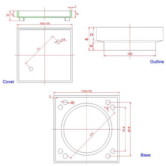 • 100x100x15mm Square Floor Waste/Drain x 50 (BULK PRICE)