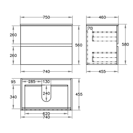 Rome Matte White Fluted Wall Hung Vanity 600-1500mm